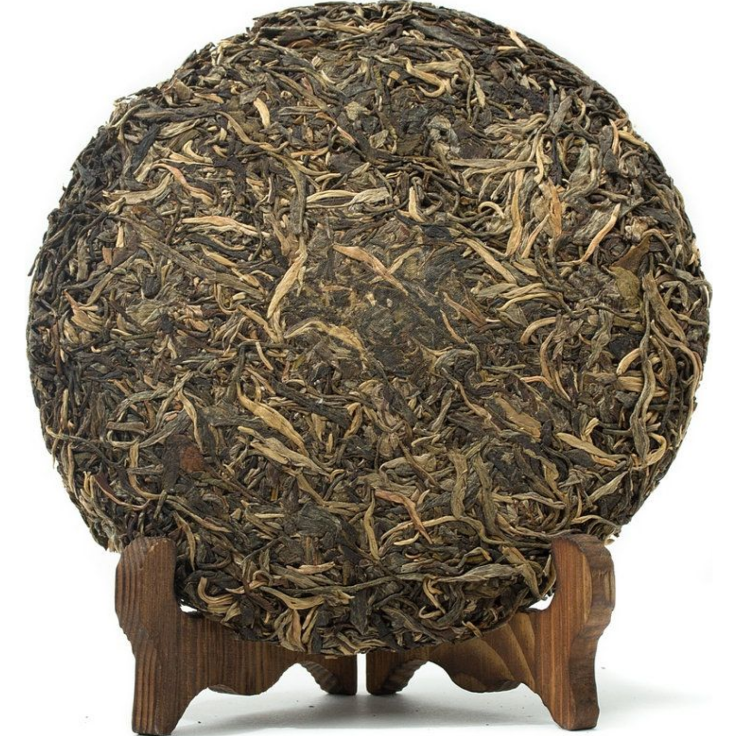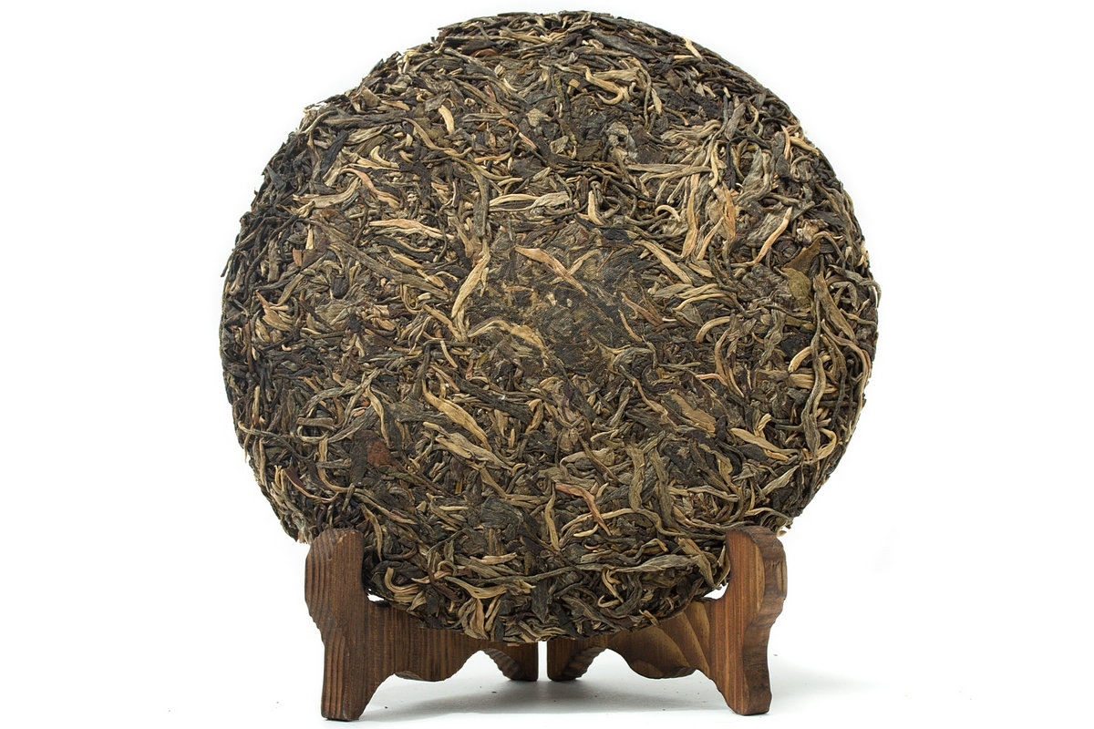 Внешний вид – большая, рыхлая лепешка, весом 500 гр. Прессовка достаточно мягкая, чай легко расслаивается ножом и разбирается на крупные жгутики листьев и почек. На разломе сырье чистое и однородное, с небольшим количеством черенков. Аромат сухого чая выразительный, сочный пряно-цветочный, с легкой древесно-сухофруктовой гаммой. Настой яркий, насыщенный, золотисто-янтарный.