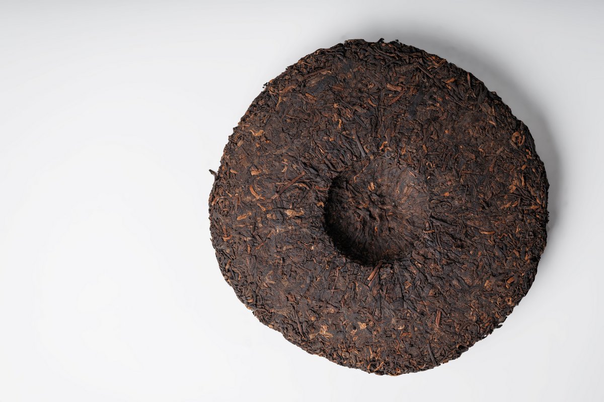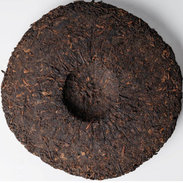 Классический круглый блинчик, весом 357 гр. с умеренно мягкой прессовкой, без особого труда разбирающейся пуэрным ножом или шилом. На разломе блин однородный, чистый и красивый, состоит из листьев среднего размера, обилия почек и небольшого количества черенков. Аромат сухого чая мягкий, спокойный, древесно-ореховый.